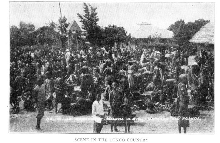 At Boma, the capital of Belgian Congo, about forty miles up the river, the work of unloading begins. Officers armed with clubs are stationed at each hatch on board ship and on shore, and they take an occasional whack at the bare backs of the natives to speed up work or punish the black with the smoldering or contemptuous eyes.