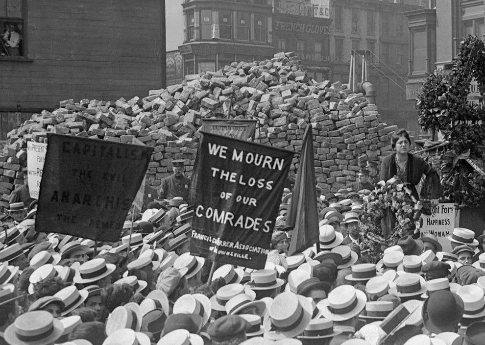 Fellow-workers, it’s sympathy and admiration for the men who died, but it’s an absolutely unconquerable determination that we are going to end capitalism, root and branch, that brings us here this afternoon.